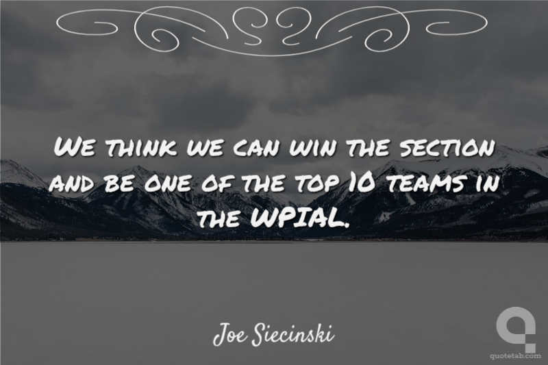 We think we can win the section and be one of the top 10 teams in the WPIAL. Joe Siecinski