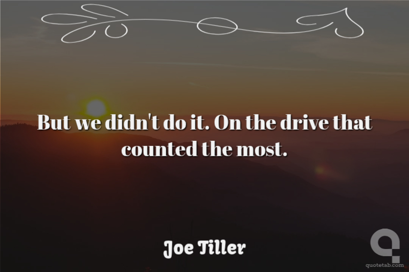 But we didn't do it. On the drive that counted the most. Joe Tiller