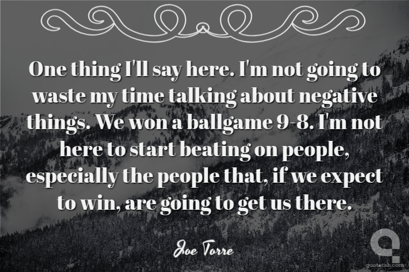 One thing I'll say here. I'm not going to waste my time talking about negative things. We won a ballgame 9-8. I'm not here to start beating on people, especially the people that, if we expect to win, are going to get us there. Joe Torre