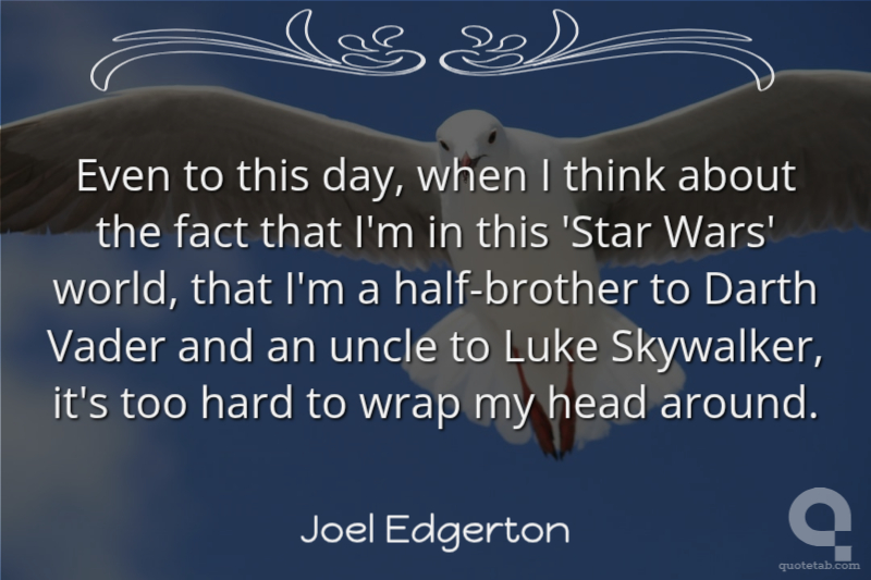 Even to this day, when I think about the fact that I'm in this 'Star Wars' world, that I'm a half-brother to Darth Vader and an uncle to Luke Skywalker, it's too hard to wrap my head around. Joel Edgerton