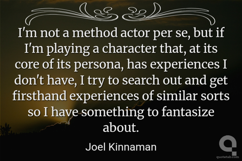 I'm not a method actor per se, but if I'm playing a character that, at its core of its persona, has experiences I don't have, I try to search out and get firsthand experiences of similar sorts so I have something to fantasize about. Joel Kinnaman