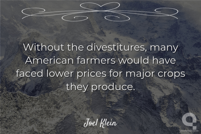 Without the divestitures, many American farmers would have faced lower prices for major crops they produce. Joel Klein