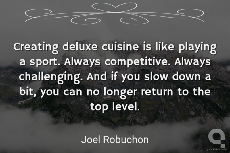 Creating deluxe cuisine is like playing a sport. Always competitive. Always challenging. And if you slow down a bit, you can no longer return to the top level. Joel Robuchon