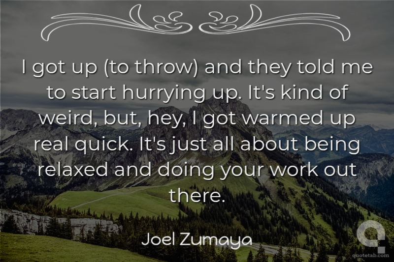 I got up (to throw) and they told me to start hurrying up. It's kind of weird, but, hey, I got warmed up real quick. It's just all about being relaxed and doing your work out there. Joel Zumaya
