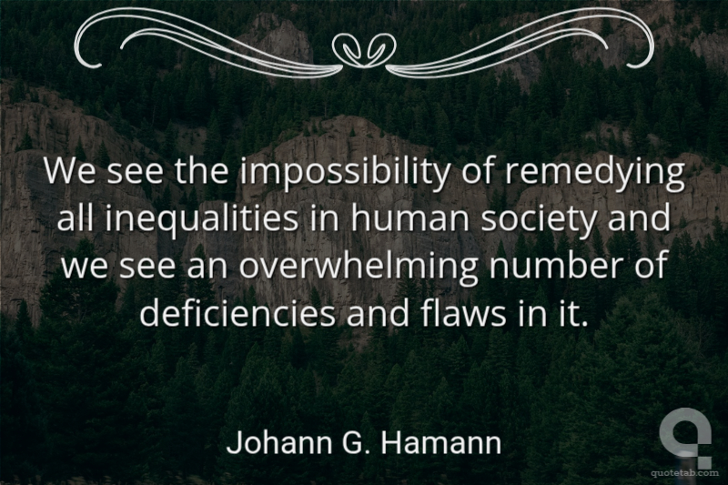 We see the impossibility of remedying all inequalities in human society and we see an overwhelming number of deficiencies and flaws in it. Johann G. Hamann
