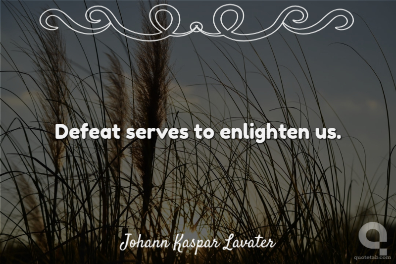Defeat serves to enlighten us. Johann Kaspar Lavater