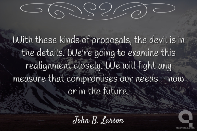 With these kinds of proposals, the devil is in the details. We're going to examine this realignment closely. We will fight any measure that compromises our needs - now or in the future. John B. Larson