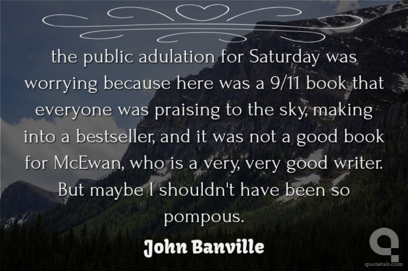 the public adulation for Saturday was worrying because here was a 9/11 book that everyone was praising to the sky, making into a bestseller, and it was not a good book for McEwan, who is a very, very good writer. But maybe I shouldn't have been so pompous. John Banville