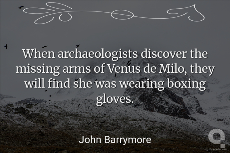 When archaeologists discover the missing arms of Venus de Milo, they will find she was wearing boxing gloves. John Barrymore