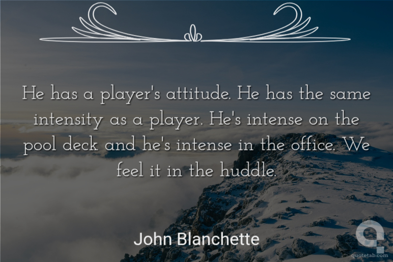 He has a player's attitude. He has the same intensity as a player. He's intense on the pool deck and he's intense in the office. We feel it in the huddle. John Blanchette