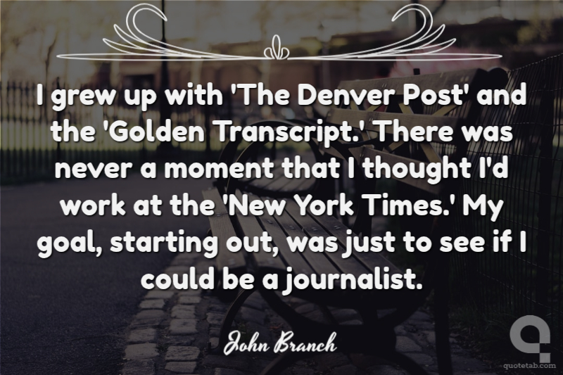 I grew up with 'The Denver Post' and the 'Golden Transcript.' There was never a moment that I thought I'd work at the 'New York Times.' My goal, starting out, was just to see if I could be a journalist. John Branch