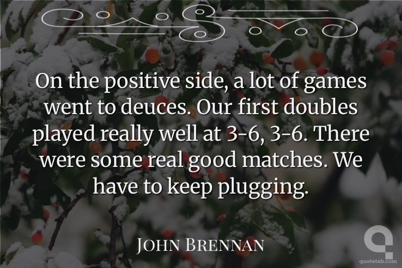 On the positive side, a lot of games went to deuces. Our first doubles played really well at 3-6, 3-6. There were some real good matches. We have to keep plugging. John Brennan