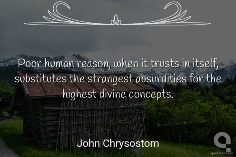 Poor human reason, when it trusts in itself, substitutes the strangest absurdities for the highest divine concepts. John Chrysostom