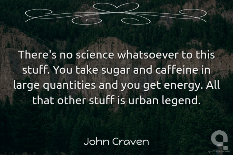 There's no science whatsoever to this stuff. You take sugar and caffeine in large quantities and you get energy. All that other stuff is urban legend. John Craven
