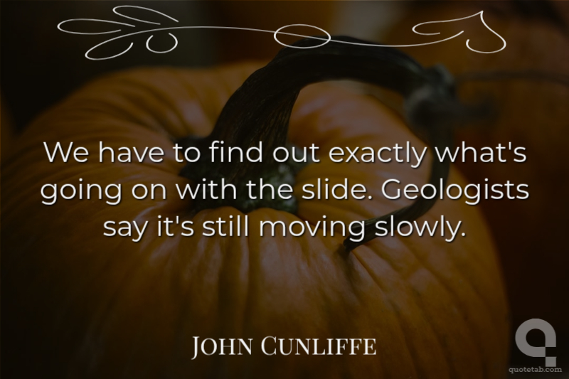 We have to find out exactly what's going on with the slide. Geologists say it's still moving slowly. John Cunliffe