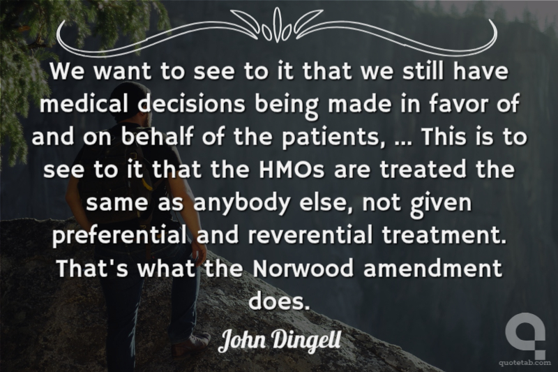 We want to see to it that we still have medical decisions being made in favor of and on behalf of the patients, ... This is to see to it that the HMOs are treated the same as anybody else, not given preferential and reverential treatment. That's what the Norwood amendment does. John Dingell