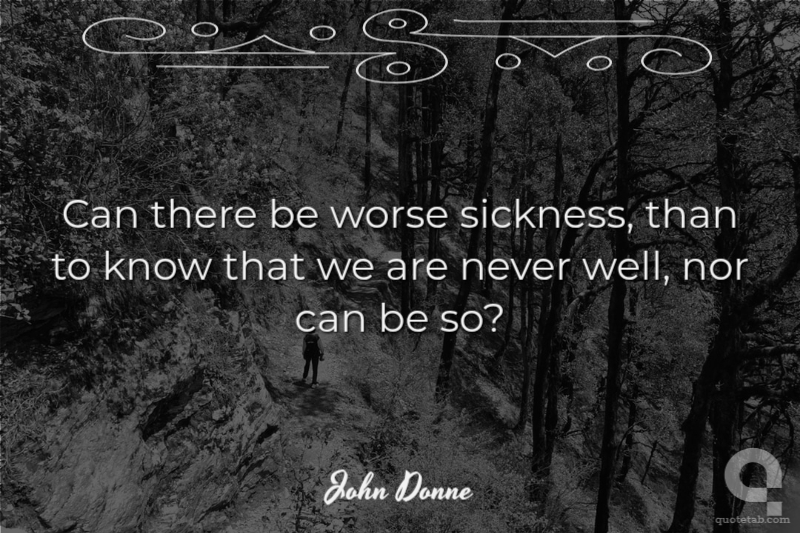 Can there be worse sickness, than to know that we are never well, nor can be so? John Donne