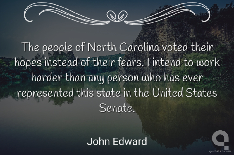 The people of North Carolina voted their hopes instead of their fears. I intend to work harder than any person who has ever represented this state in the United States Senate. John Edward