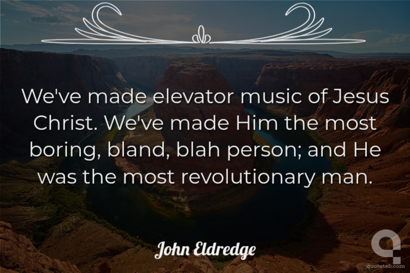 We've made elevator music of Jesus Christ. We've made Him the most boring, bland, blah person; and He was the most revolutionary man. John Eldredge