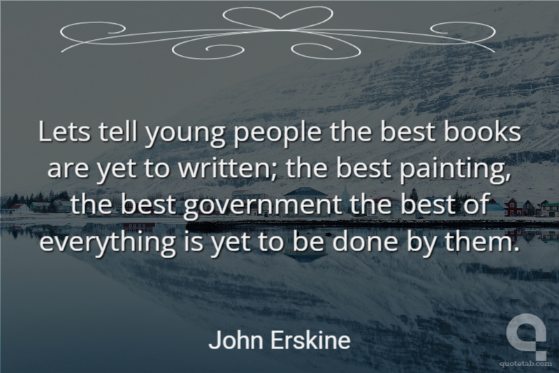 Lets tell young people the best books are yet to written; the best painting, the best government the best of everything is yet to be done by them. John Erskine