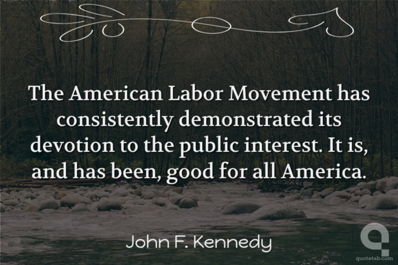 The American Labor Movement has consistently demonstrated its devotion to the public interest. It is, and has been, good for all America. John F. Kennedy