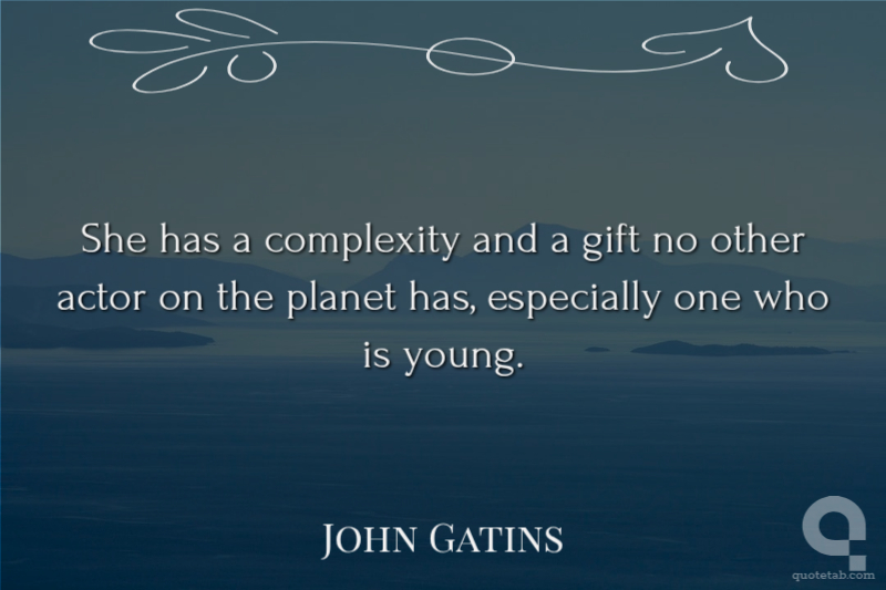 She has a complexity and a gift no other actor on the planet has, especially one who is young. John Gatins