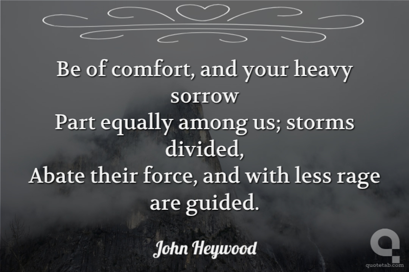 Be of comfort, and your heavy sorrow Part equally among us; storms divided, Abate their force, and with less rage are guided. John Heywood