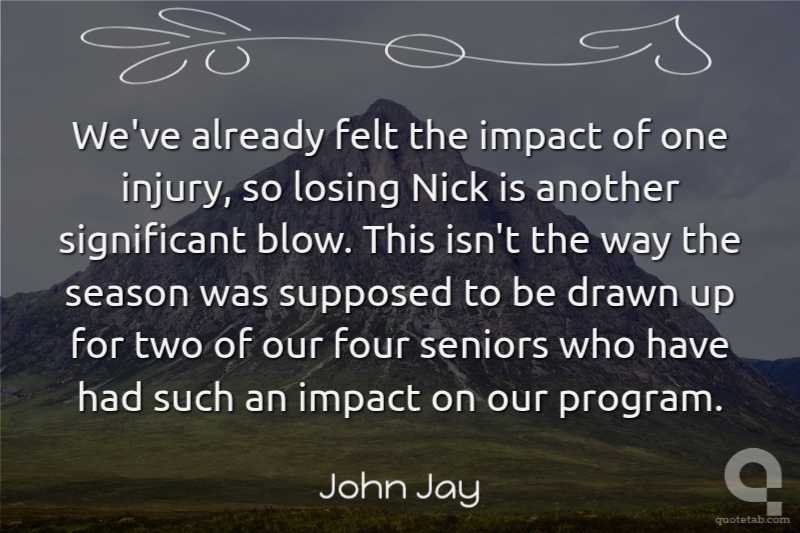 We've already felt the impact of one injury, so losing Nick is another significant blow. This isn't the way the season was supposed to be drawn up for two of our four seniors who have had such an impact on our program. John Jay