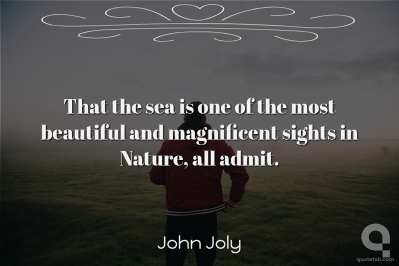 John Joly That the sea is one of the most beautiful and magnificent sights in Nature, all admit.