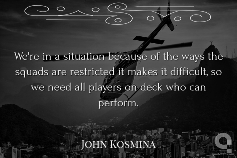 We're in a situation because of the ways the squads are restricted it makes it difficult, so we need all players on deck who can perform. John Kosmina