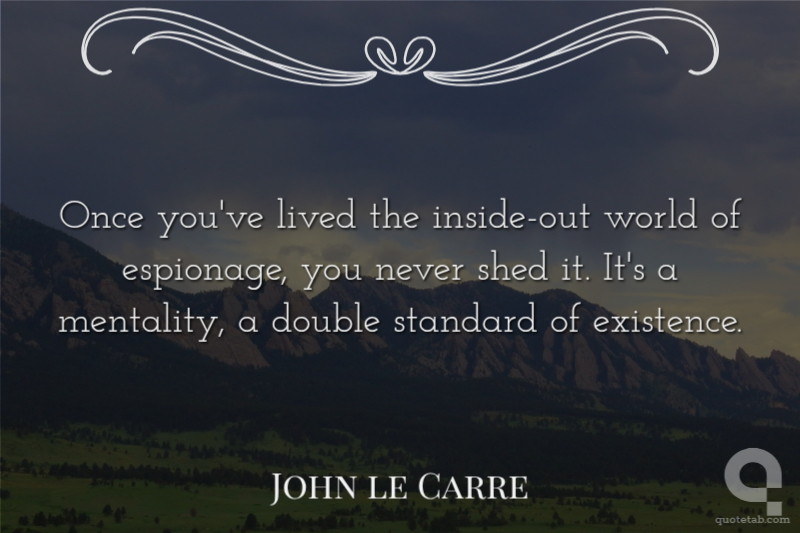 Once you've lived the inside-out world of espionage, you never shed it. It's a mentality, a double standard of existence. John le Carre