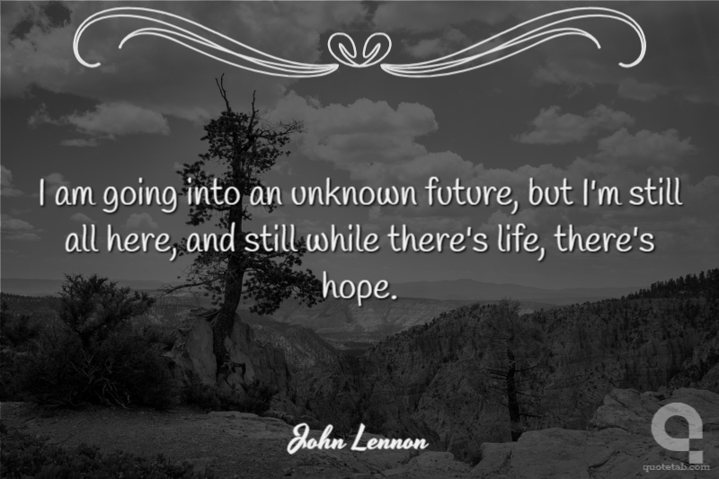 I am going into an unknown future, but I'm still all here, and still while there's life, there's hope. John Lennon