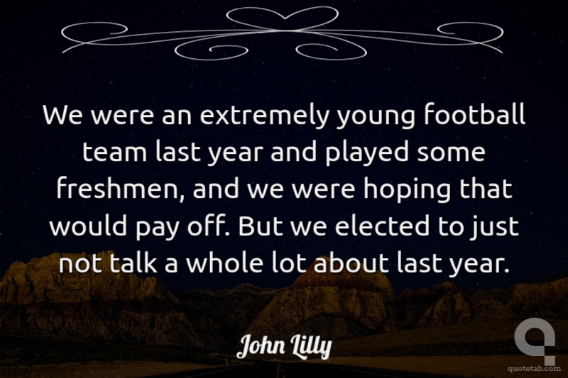 We were an extremely young football team last year and played some freshmen, and we were hoping that would pay off. But we elected to just not talk a whole lot about last year. John Lilly