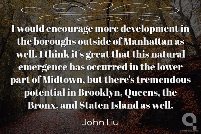 I would encourage more development in the boroughs outside of Manhattan as well. I think it's great that this natural emergence has occurred in the lower part of Midtown, but there's tremendous potential in Brooklyn, Queens, the Bronx, and Staten Island as well. John Liu