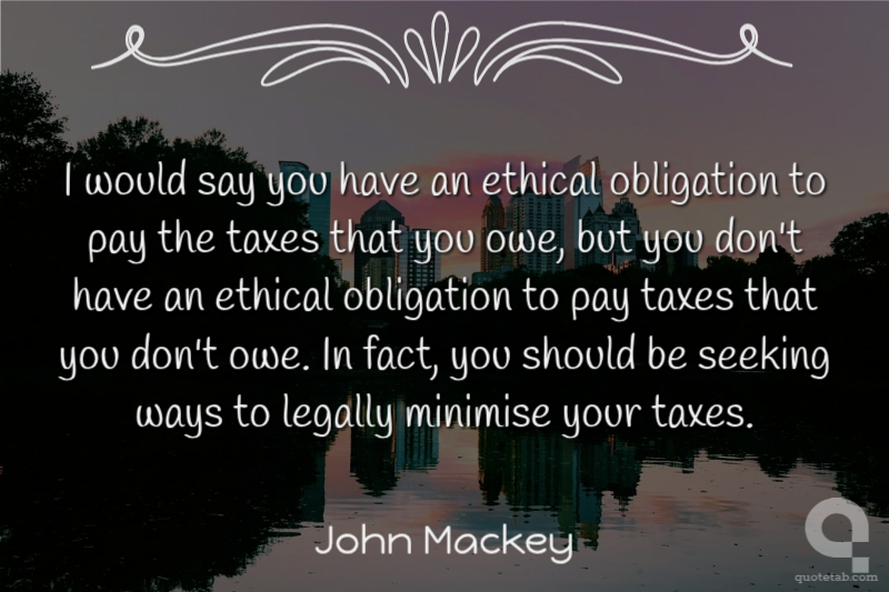 I would say you have an ethical obligation to pay the taxes that you owe, but you don't have an ethical obligation to pay taxes that you don't owe. In fact, you should be seeking ways to legally minimise your taxes. John Mackey