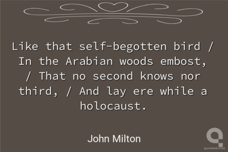 Like that self-begotten bird / In the Arabian woods embost, / That no second knows nor third, / And lay ere while a holocaust. John Milton