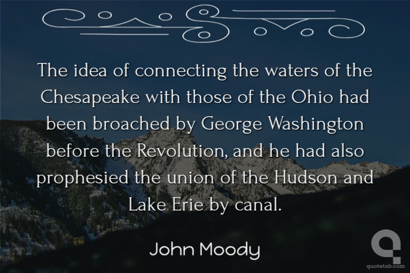 The idea of connecting the waters of the Chesapeake with those of the Ohio had been broached by George Washington before the Revolution, and he had also prophesied the union of the Hudson and Lake Erie by canal. John Moody