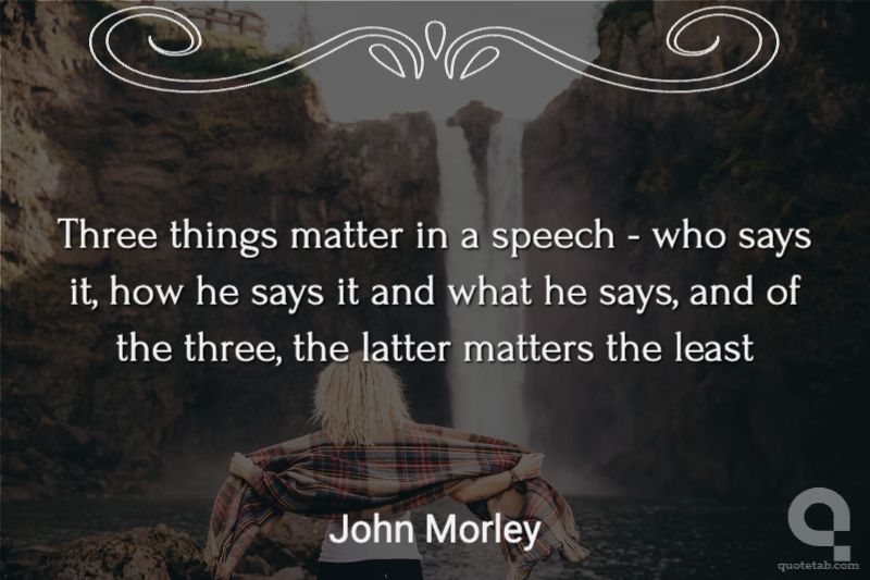 Three things matter in a speech - who says it, how he says it and what he says, and of the three, the latter matters the least John Morley