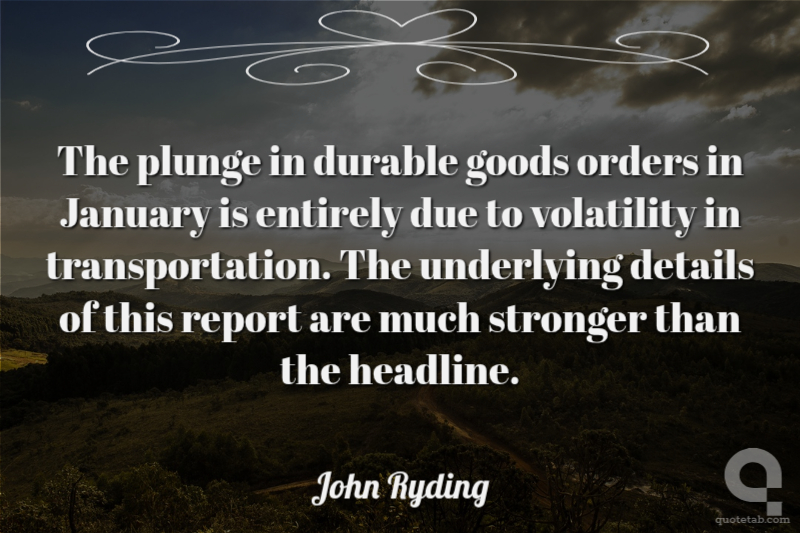 The plunge in durable goods orders in January is entirely due to volatility in transportation. The underlying details of this report are much stronger than the headline. John Ryding