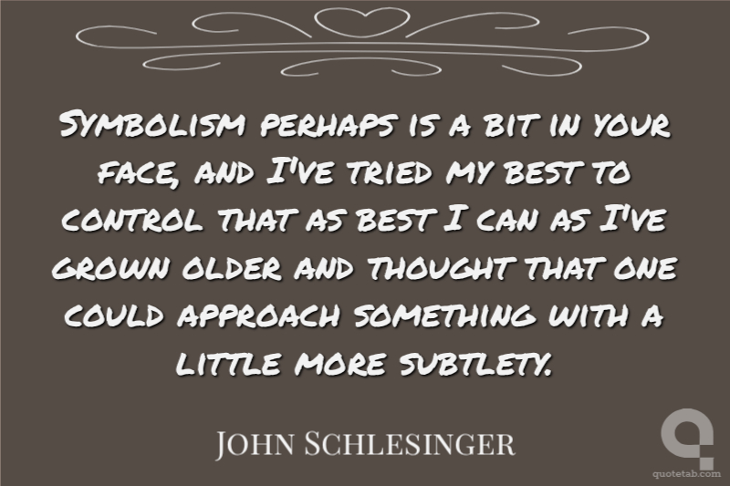Symbolism perhaps is a bit in your face, and I've tried my best to control that as best I can as I've grown older and thought that one could approach something with a little more subtlety. John Schlesinger
