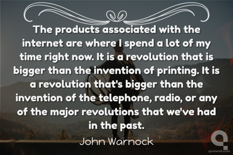 The products associated with the internet are where I spend a lot of my time right now. It is a revolution that is bigger than the invention of printing. It is a revolution that's bigger than the invention of the telephone, radio, or any of the major revolutions that we've had in the past. John Warnock