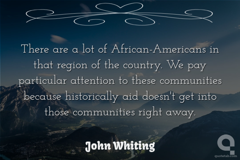 There are a lot of African-Americans in that region of the country. We pay particular attention to these communities because historically aid doesn't get into those communities right away. John Whiting