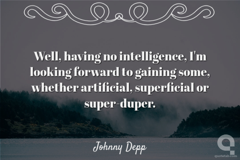 Well, having no intelligence, I'm looking forward to gaining some, whether artificial, superficial or super-duper. Johnny Depp