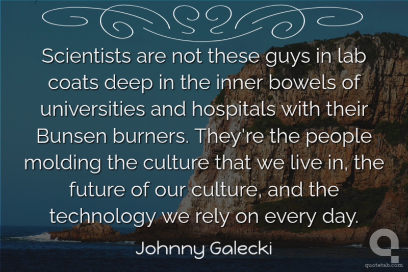 Scientists are not these guys in lab coats deep in the inner bowels of universities and hospitals with their Bunsen burners. They're the people molding the culture that we live in, the future of our culture, and the technology we rely on every day. Johnny Galecki