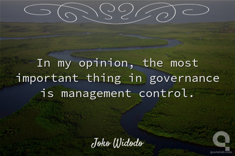 In my opinion, the most important thing in governance is management control. Joko Widodo