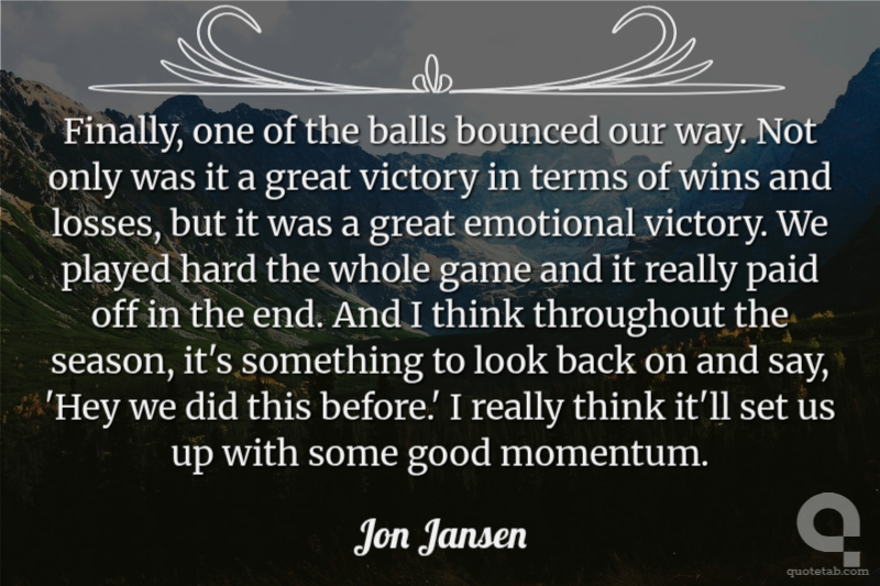We have to get off to a good start. It's one of those things of whoever wants it the most is going to end up getting it. Jordan Leopold
