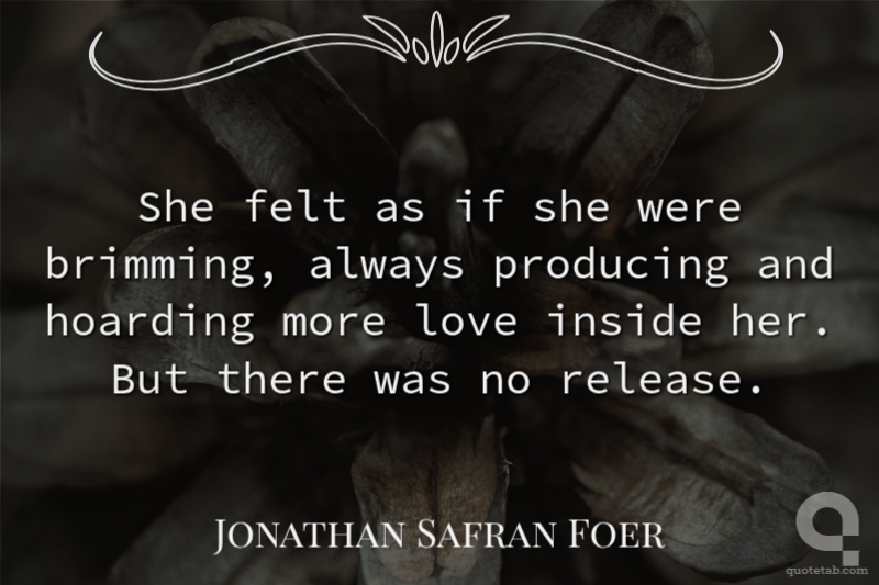 She felt as if she were brimming, always producing and hoarding more love inside her. But there was no release. Jonathan Safran Foer
