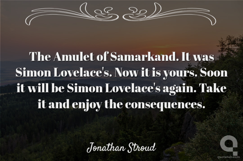The Amulet of Samarkand. It was Simon Lovelace's. Now it is yours. Soon it will be Simon Lovelace's again. Take it and enjoy the consequences. Jonathan Stroud