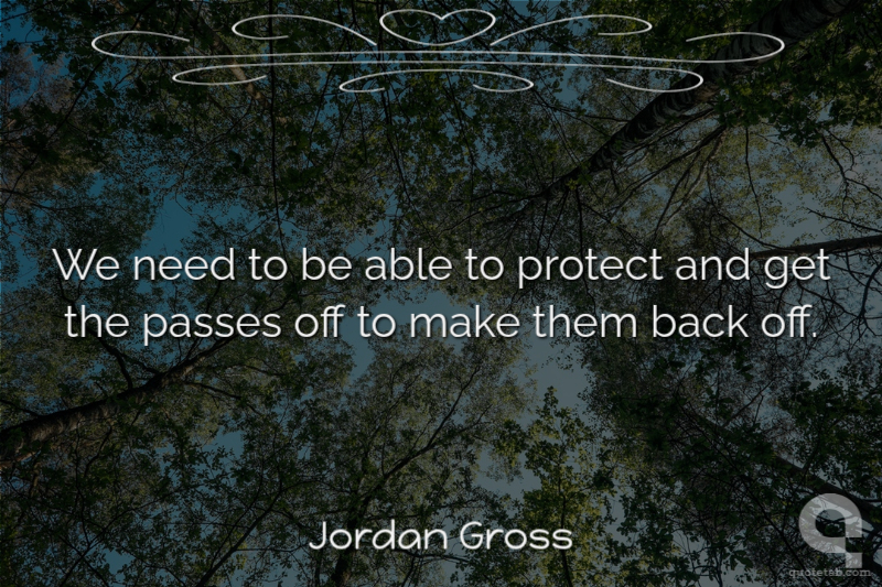 We need to be able to protect and get the passes off to make them back off. Jordan Gross
