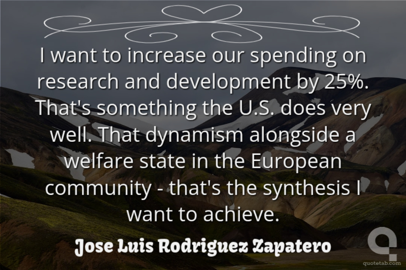 I want to increase our spending on research and development by 25%. That's something the U.S. does very well. That dynamism alongside a welfare state in the European community - that's the synthesis I want to achieve. Jose Luis Rodriguez Zapatero